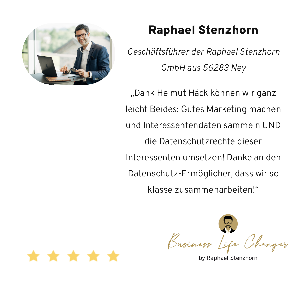 Mir und meinem Fachwissen vertrauen die Kunden, Dienstleister, die Datenschutzaufsichtsbehörde sowie das Top-Management in einem Konzern mit ca. 10.000 Mitarbeitern schon jahrelang.